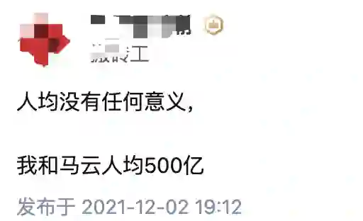 不过也有网友表示,「人均没有任何意义,我和马云人均500亿。」