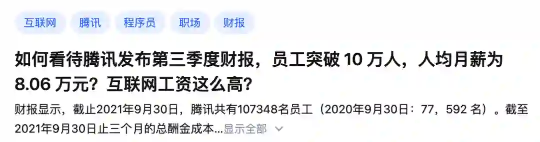 财报显示,截至2021年9月底,腾讯集团的员工数达到107,348名,这意味着将有近24%的腾讯员工可获得股票奖励。