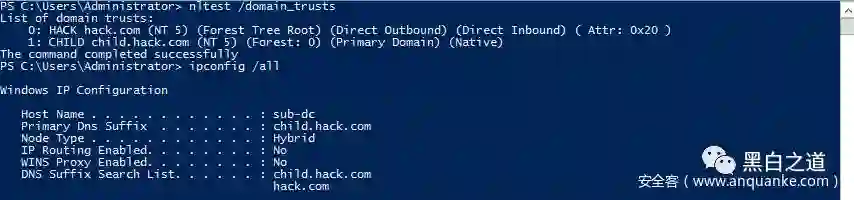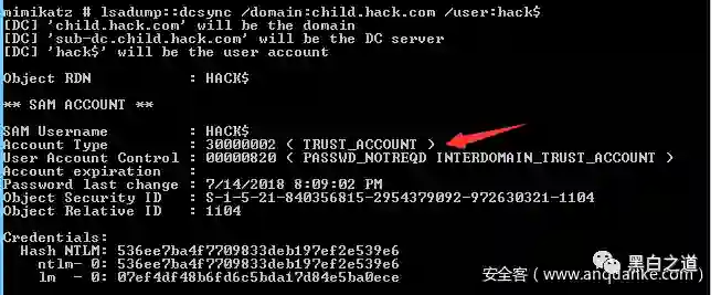 domain:当前子域,sid:当前子域SID,sids:信任域的SID,也就是父域,krbtgt:当前域的krbtgt的值,user是trust account,不确定可以使用dcsync在看下。