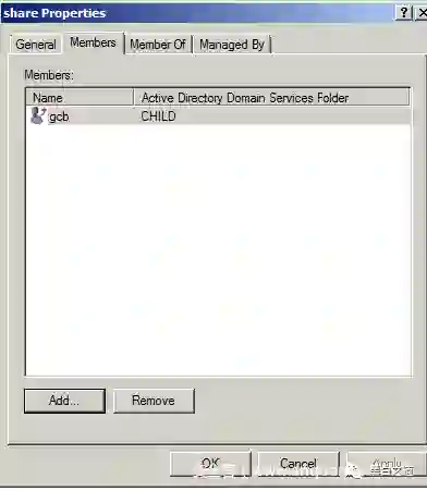 4.在B域中建立一个本地share 组,把CA域的GCB添加到这里,这里添加的时候需要输入CA的用户名和密码验证。