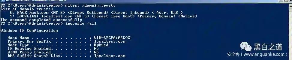 windows 2012 (hack.com 192.168.199.151) 本文中称为A 域