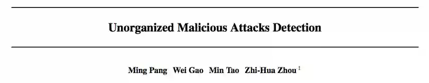 这篇论文研究了一种新型攻击模型——无组织恶意攻击(unorganized malicious attack),攻击者在没有任何组织者的情况下单独使用少量的用户资料来攻击目标。这种攻击类型在很多实际应用中都有发生,例如,Amazon 上的在线商店可能会制造一些虚假评价,降低其竞品高质量鞋子的评分;作家可能会雇佣几个读者给他们的低质量书籍打好评。实际证明这种少数的无组织恶意攻击会严重地影响系统,例如,首次恶意差评能够将卖家的销量较低 13% (Luca, 2016)。