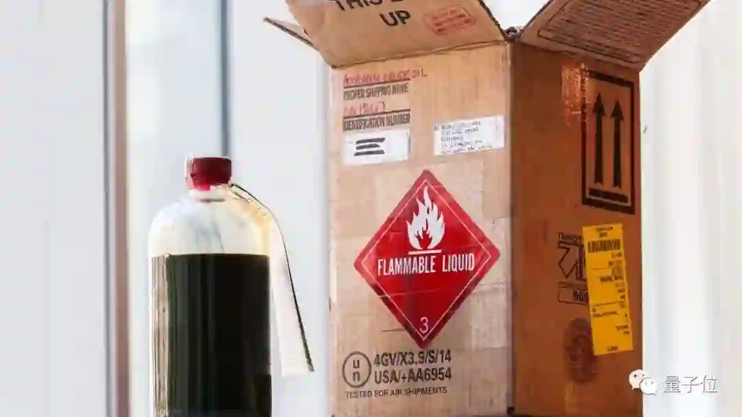 石油检查公司通过联邦快递发货,把这瓶原油寄给了Tracy小姐姐,运输的箱子上还有易燃液体的警示。