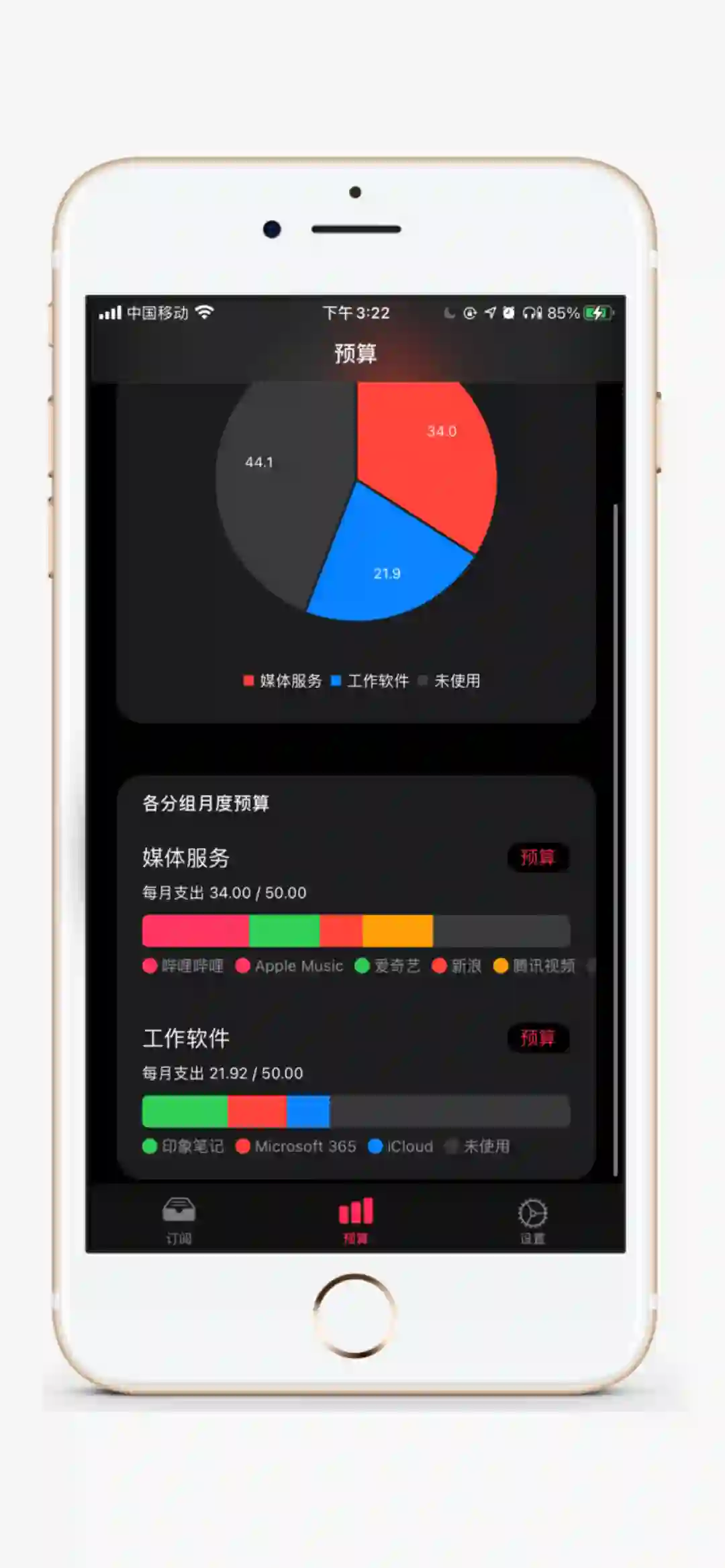 选择某个服务,点击进入即可细化每个订阅的具体信息,包括「订阅起始日」、「付款周期」、「订阅时长」、「提醒我」以及「货币」,软件会根据设置及时给予用户到期续费提醒。在主界面的底部,软件还会根据用户添加的全部订阅,得出所有订阅服务相加后的总金额。Bobby 免费下载,但非 Pro 用户最多可添加 5 个订阅,若需要更多订阅个数则必须内购。Pro 用户的权益包括「可添加无限订阅个数」、「暗黑模式」、「可选字体」、「可修改 App 图标」、「iCloud 备份」以及「Touch ID 或 Face ID 解锁」等,这个组合包总共收费 12 元。