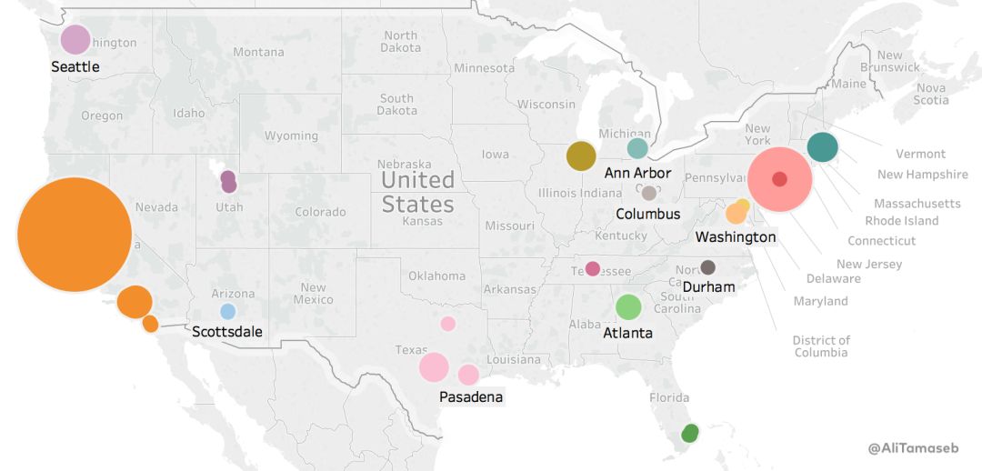 但是像佛罗里达、德克萨斯、华盛顿和犹他州,也同样拥有一定数量的“十亿美元创业公司”。