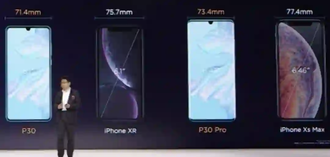 两款机型均采用了后置三摄以及水滴屏设计。整个界面小刘海开口,设计对称,边框极窄。整个手机看起来非常紧凑。余承东也在会上与友商“Apple”进行了对比:外观更紧凑,6.1英寸和6.47英寸的屏幕,其宽度仅71.4mm、7.34mm。