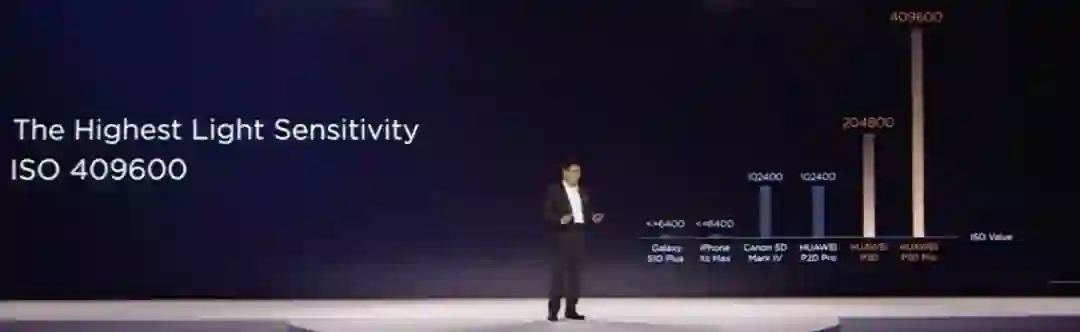 官方介绍,这颗4000万像素主摄是全球首颗采用RYYB(红、黄、黄、蓝)滤光阵列的CMOS,取代传统的RGB(红绿蓝),感光尺寸为1/1.7英寸,感光度高达ISO 409600。