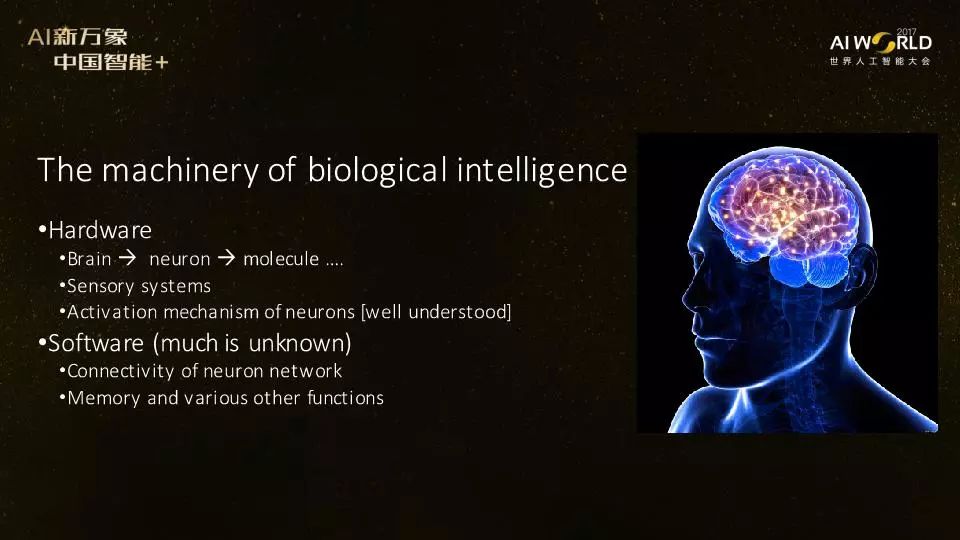 软件呢我们有很多东西都不太明白。人类智能软件和硬件的区分也可以讨论。而我个人把神经元之间的连接归为软件。不过,我们现在还没有彻底弄清人类神经元之间整体是怎么连接的。小的系统如线虫的神经元怎么连接我们知道了,老鼠的还不清楚,果蝇的正在做。更高级的功能,比如记忆、推理、决策,都还是很不清楚。