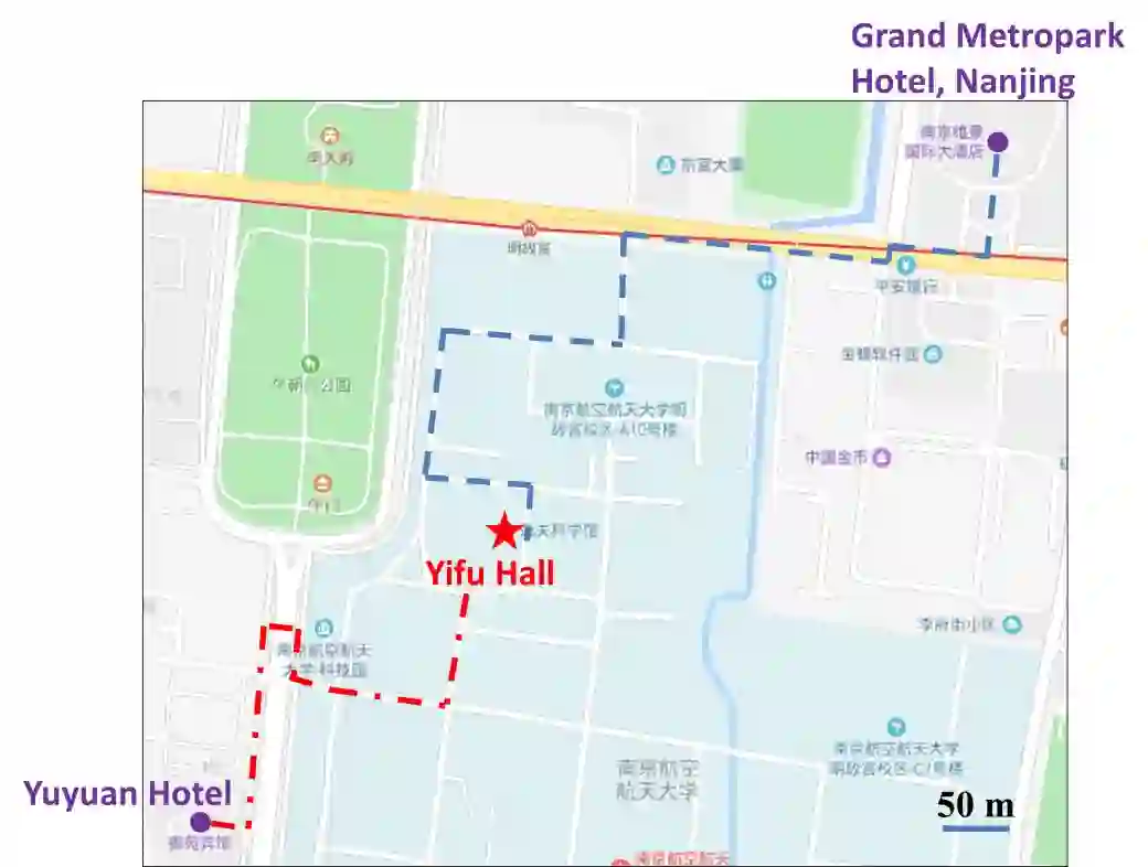 In AFM2 2018, most constructions are located inside the Ming Palace Campus of Nanjing University of Aeronautics and Astronautics (南京航空航天大学明故宫校区):