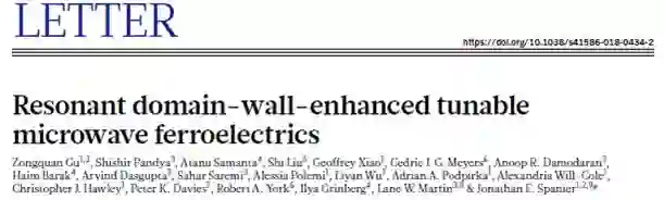 Jonathan Spanier, 畴界共振增强可调微波铁电器件,Nature (2018)。