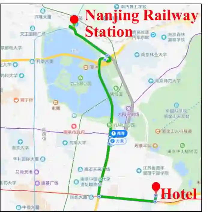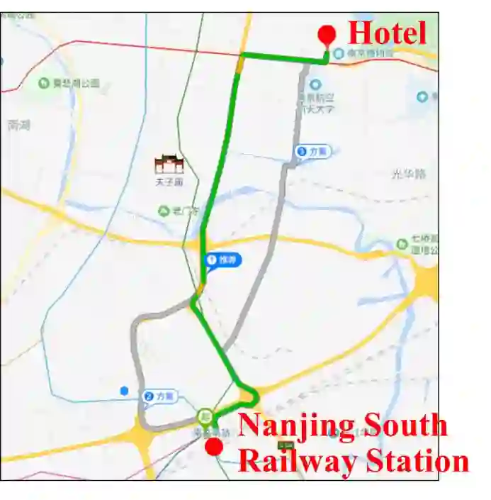 2. From Nanjing South Railway Station (南京南站) to the Yuyuan Hotel and the Grand Metropark Hotel, Nanjing: