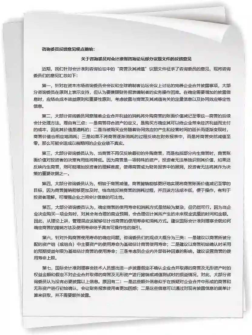简单而言就是,该委员会的大部分咨询委员认为,应该将商誉减值改为商誉摊销。