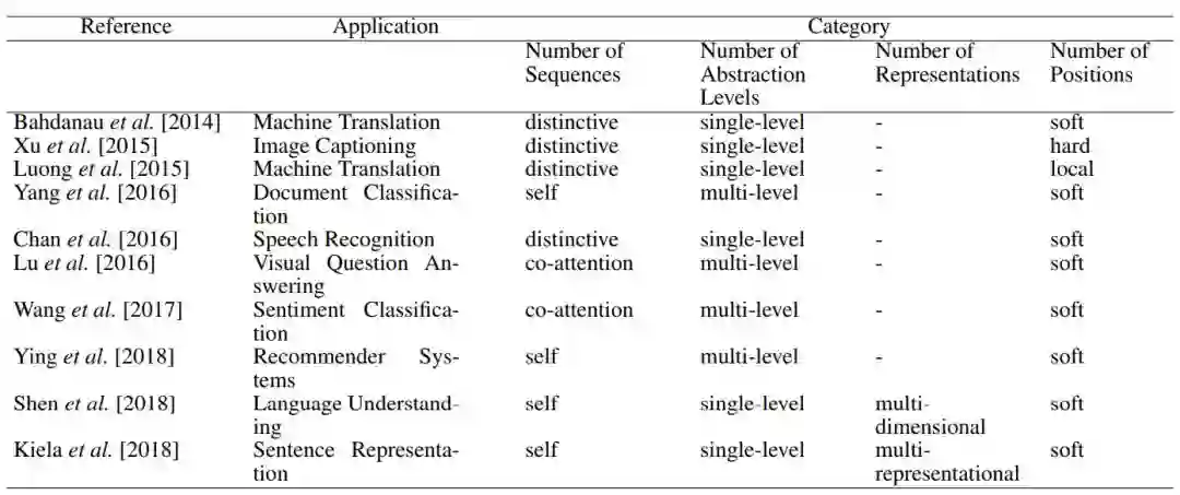 表 2:有关注意力模型技术方法的重要论文。『-』表示「不适用」。