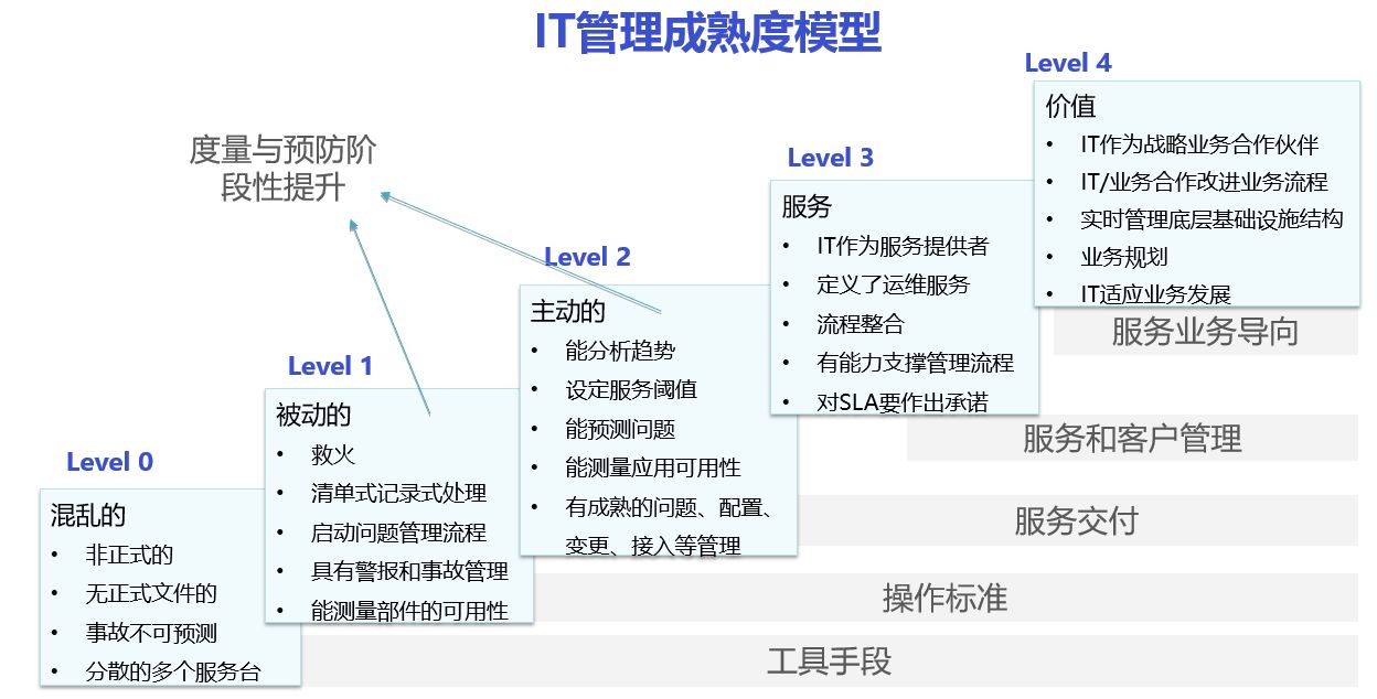 IT服务成熟度模型中,监控手段是转被动运维为主动运维的必然“预防“和”度量“手段。因此,在这么多年的重大故障分析会议上,监控问题总是在会议前期和后期都拿出来重点讨论的,会议一开始就要问“为什么故障没有被监控出来”或者”在故障发生的前后都监控出来什么异样“。会议结束前的总结通常是“对于漏掉的监控项一定要被加入“或者是”对于监控到的指标或阀值一定要被优化“。