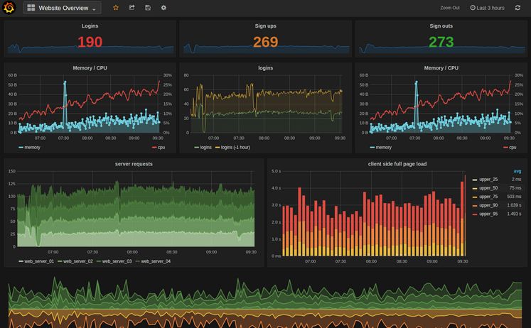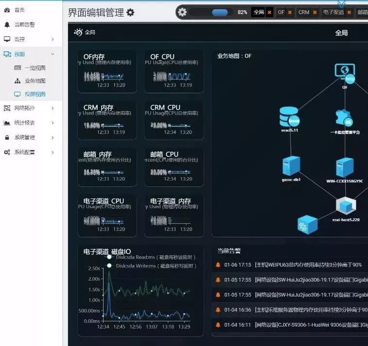 在界面展示上,目前使用较多的Grafana+Zabbix,能达到一定的展示效果,实施效果如下图: