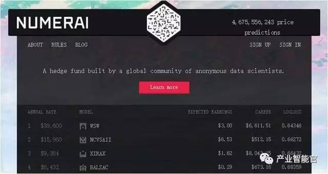 美国创业公司Numerai是一家以众包模式结合人工智能技术的对冲基金,通过人工智能技术,可以避免传统程序化交易因无法根据实时发生的市场变动调整算法,造成资产损失的风险。自2015年底建立以来,已经有数千人参与了其机器学习模型的建设,并收到近47亿次股票价格预测。