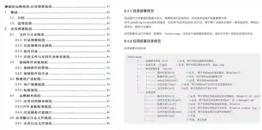 标准化文档里面主要就是规范上述一些内容,这些内容为后面的运维系统做了规范,我们运维系统都是基于这个规范来做。