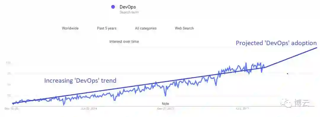 下图显示的是“DevOps”这个术语的Google趋势和2018年预计增长的假设。