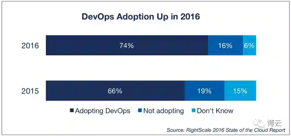谈及统计,DevOps的采用已经在2015年-2016年大约增长了8%,而且这个数字预计将在2018年显著增长,如上图所示。