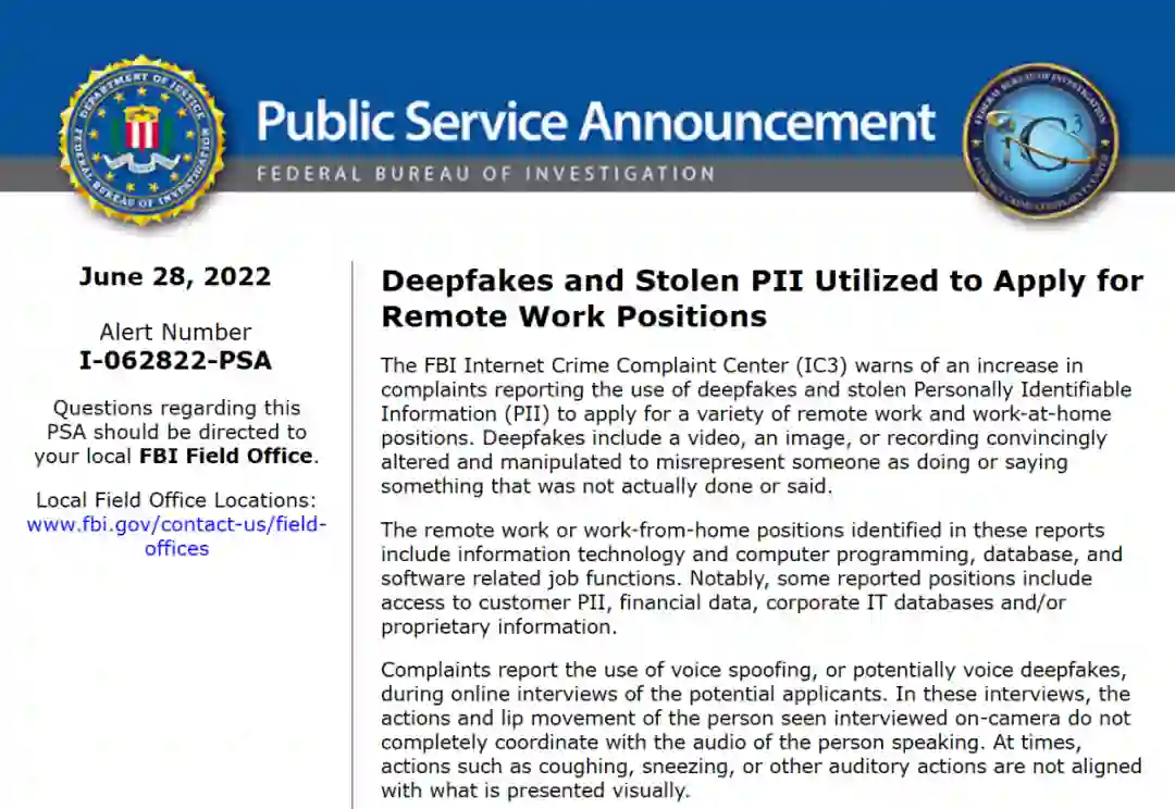 https://www.pcmag.com/news/fbi-scammers-are-interviewing-for-remote-jobs-using-deepfake-tech