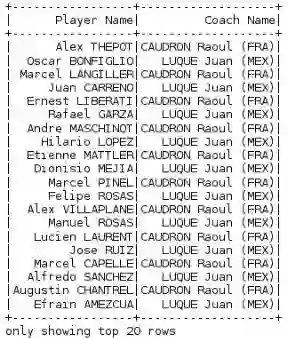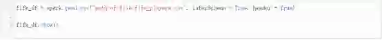 让我们从一个CSV文件中加载数据。这里我们会用到spark.read.csv方法来将数据加载到一个DataFrame对象(fifa_df)中。代码如下: