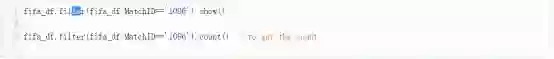 为了过滤数据,根据指定的条件,我们使用filter命令。 这里我们的条件是Match ID等于1096,同时我们还要计算有多少记录或行被筛选出来。