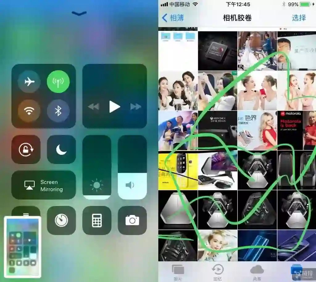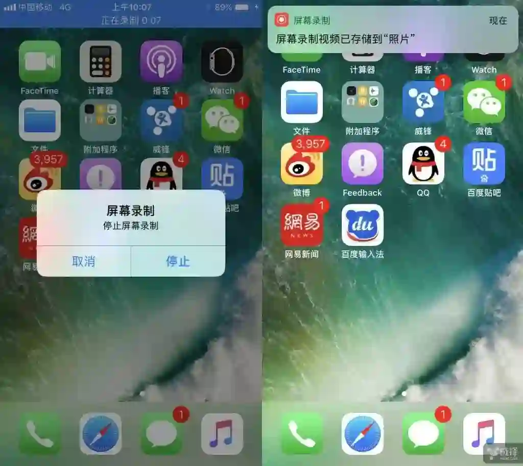 需要注意的是,这个录制屏幕功能真的有点太简单了,缺陷也还是有的,因为在点击录制那一刻起到结束录制的瞬间,屏幕上的一切都会捕捉下来。如果你想让录制的视频看起来更干净一些,自己可以到相册中将视频开头和结尾不需要的镜头剪掉,但是蓝色顶部的录制信息条去不掉。