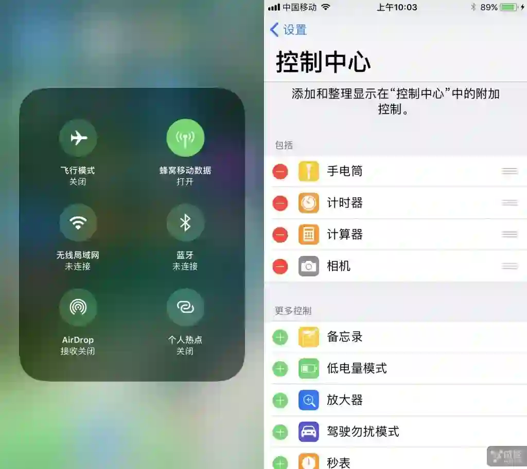 控制中心更多定制选项