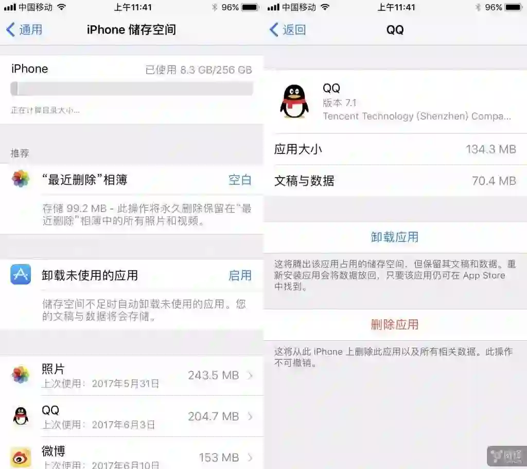 另外,关于省储存空间的优化,在储存空间这项设置中,苹果还增加了通过“卸载”应用优化储存空间的新功能,这一功能的意思是,你如果“卸载”了不常用的应用,文稿和数据依然能够保留,重装就能放回,与“删除”这一彻底清空数据的方式不同。关于“卸载”这个功能,苹果提供自动操作,只要开启就能空间不足时自动删除未使用的应用。