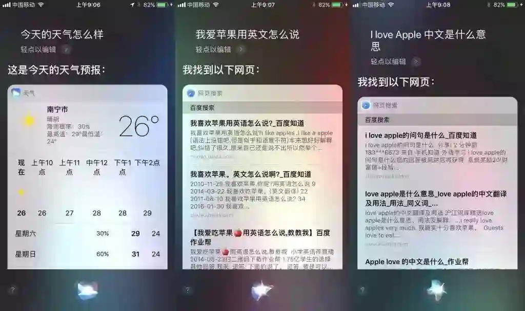 iOS 的 Siri 经过重大升级之后更加智能,首先是已经支持两种全新的声音,有男性也有女性声音,当与 Siri 进行互动时,反应更快速灵敏,中文细听起来声音比之前一版更加自然一些,但依然没有显得更加有亲和力,具体表现力还是在英文上,包括调整音调、音高、重音和语速,中文 Siri 与美国 Siri还不是一个级别。