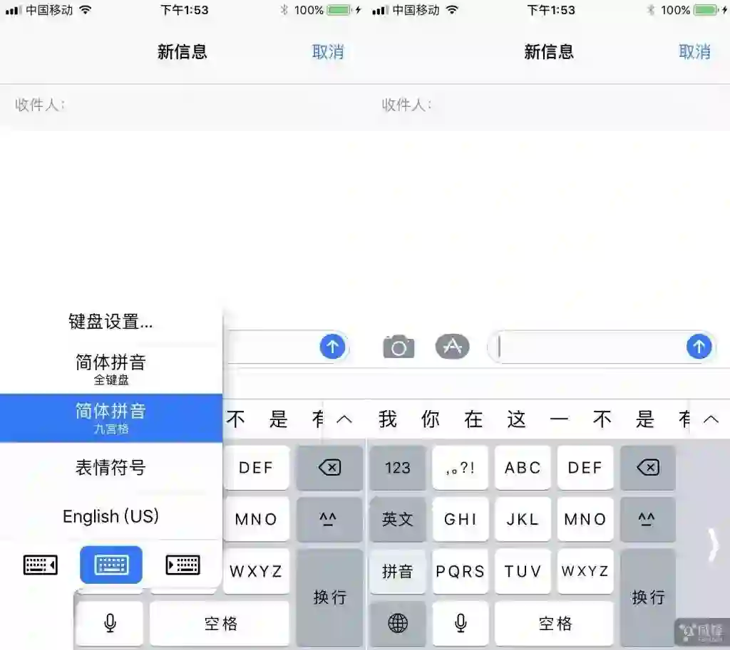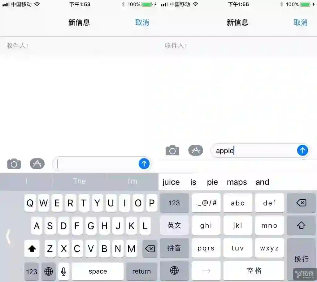 在新版 iOS 11 系统中,九宫格键盘输入英文和中文变得比以往更简单,既支持输入拼音也能够输入英文,用户不必切换键盘,或减少在键盘之间进行切换。同时,苹果为其增加了新的语言引擎,帮助更快、更频繁地识别英语单词,因此在九宫格键盘可用两种语言打字。
