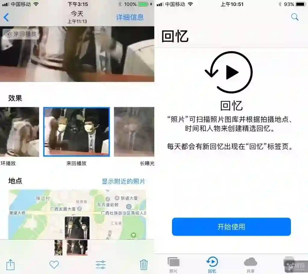 同时,回忆功能升级了,在横向和纵向模式下都可以播放,它还可自动创建更多“回忆”类别,如宠物或生日派对等。iOS 11 因为加入了 AI 技术,通过机器学习及照片相关数据,可以创造更多更美好的回忆相册,就算你长期拍摄宠物,也能轻松帮你打造一本属于你宠物的回忆相册。不过,自己 iPhone 中没有太多照片,以上功能就不多体验了。