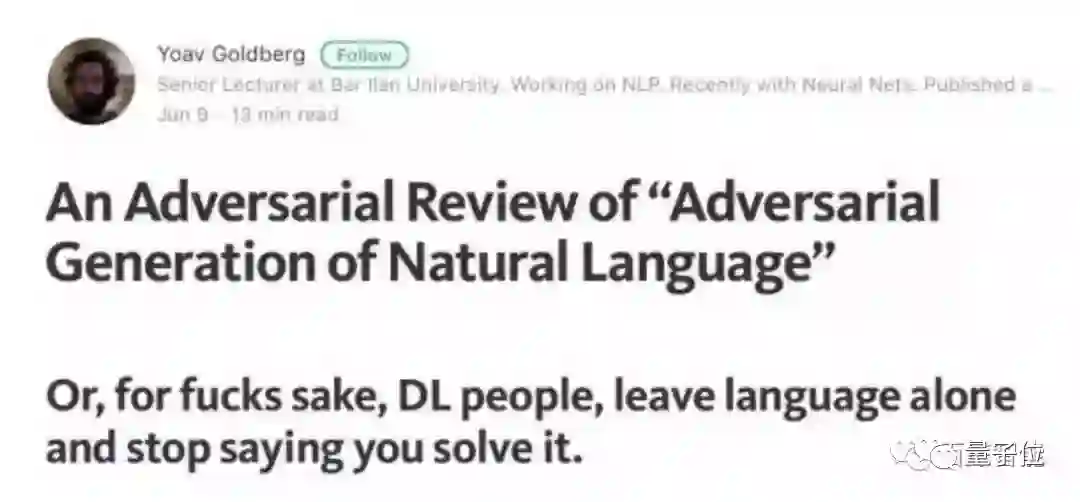 Yoav 先是在 Twitter 上发了一篇推文表明自己不喜欢这篇论文的工作,之后又写了一篇Medium长文(图1)表达自己的观点: