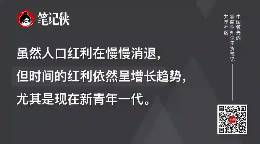 虽然人口红利在慢慢消退,但时间的红利依然呈增长趋势,尤其是现在新青年一代。