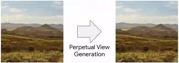 谷歌将主要研究问题称为「永久型视图生成(perpetual view generation)」,即给定场景的单个输入视图,按照给定的相机路径,合成照片级真实的输出视图集。这一任务非常具有挑战性,因为系统必须为输入图像上的大型地标(例如山脉)的另一侧生成新内容,并以高逼真度和高分辨率渲染新内容。