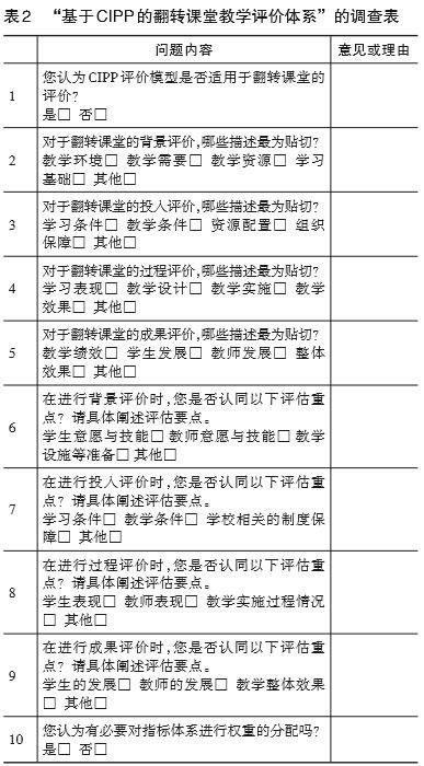 (1)所有专家一致认为CIPP模型适合评价翻转课堂。理由是:使用CIPP模型能够对翻转课堂进行过程评价,强调改进与反馈,为当前翻转课堂的评价提供了很好的思路与方法。