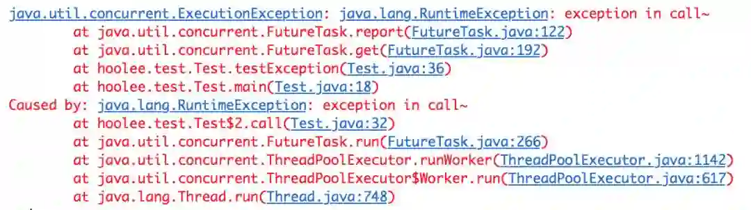 throw new RuntimeException("exception in call~");// 该异常会在调用Future.get()时传递给调用者
