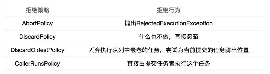 corePoolSize -> 任务队列 -> maximumPoolSize -> 拒绝策略
