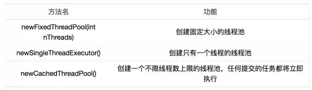 Executors中创建线程池的快捷方法,实际上是调用了ThreadPoolExecutor的构造方法(定时任务使用的是ScheduledThreadPoolExecutor),该类构造方法参数列表如下:
