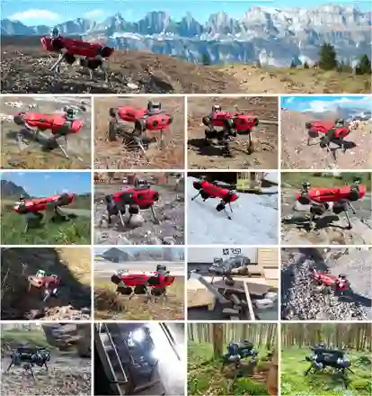 借助腿式运动控制器,机器人可以穿越一些现有方法无法到达的复杂地形。该控制器拥有在零样本环境中的泛化能力,即使遇见训练过程中未见过的条件,仍然具备鲁棒性。