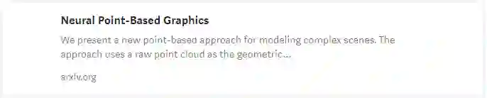 在本文中,研究者提出了一种新的基于点的复杂场景建模方法。该方法使用原始点云作为场景的几何表征,并且利用能够编码局部几何结构和外观的可学习神经描述符来增大每个点。