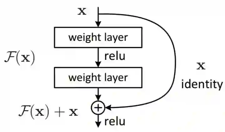 作者想到了构建恒等映射(Identity mapping)来解决这个问题,问题解决的标志是:增加网络层数,但训练误差不增加。为什么是恒等映射呢,我是这样子想的:20层的网络是56层网络的一个子集,56层网络的解空间包含着20层网络的解空间。如果我们将56层网络的最后36层全部短接,这些层进来是什么出来也是什么(也就是做一个恒等映射),那这个56层网络不就等效于20层网络了吗,至少效果不会相比原先的20层网络差吧。同样是56层网络,不引入恒等映射为什么就不行呢?因为梯度消失现象使得网络难以训练,虽然网络的深度加深了,但是实际上无法有效训练网络,训练不充分的网络不但无法提升性能,甚至降低了性能。