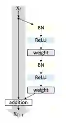 ResNet v2 使用恒等映射,且相加后不使用激活函数,因此可得到: