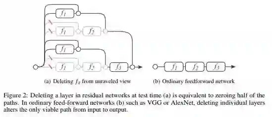 ResNet 中其实是存在着很多路径的集合,整个ResNet类似于多个网络的集成学习,证据是删除部分ResNet的网络结点,不影响整个网络的性能,但是在VGG上做同样的事请网络立刻崩溃,由此可见相比其他网络ResNet对于部分路径的缺失不敏感。更多细节具体可参见NIPS论文: Residual Networks Behave Like Ensembles of Relatively Shallow Networks ;