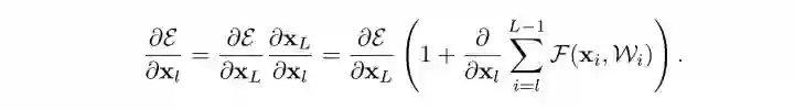 我们从这个表达式可以看出来:第l层的梯度里,包含了第L层的梯度,通俗的说就是第L层的梯度直接传递给了第l层。因为梯度消失问题主要是发生在浅层,这种将深层梯度直接传递给浅层的做法,有效缓解了深度神经网络梯度消失的问题。