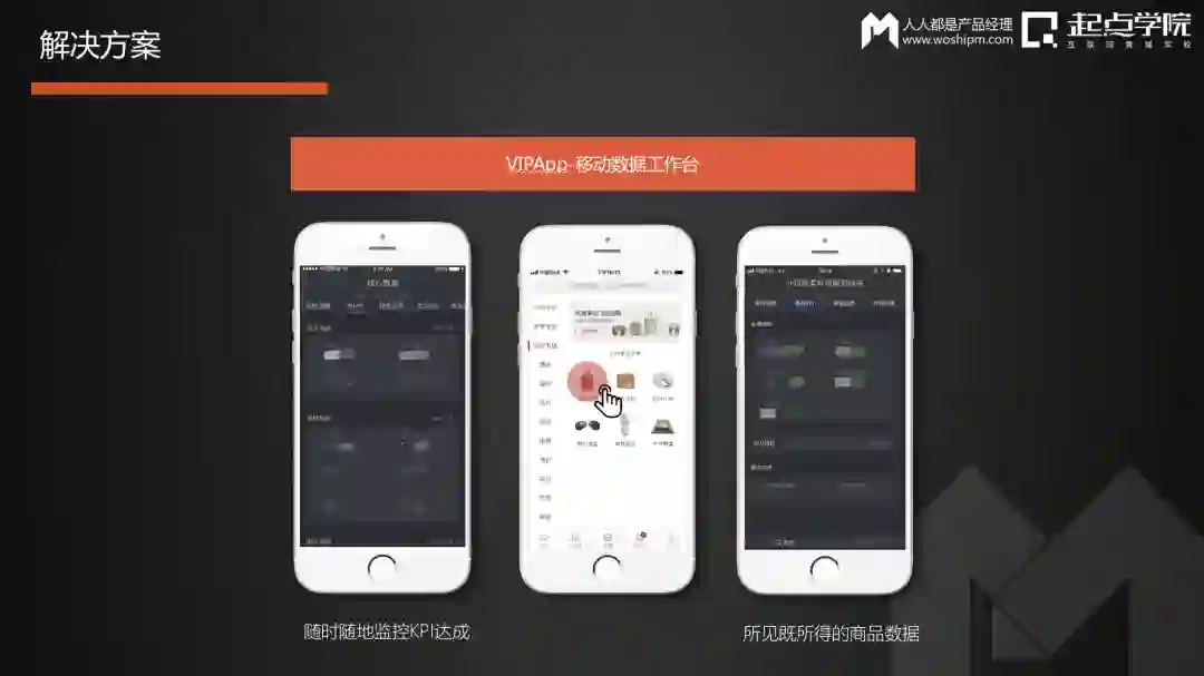 针对CXO的看数场景和需求(痛点),我们设计开发了VIPApp-移动数据工作台。VIPApp为CXO提供了随时随地监控KPI以及所见既所得商品、类目、流量数据。下图中是VIPApp很早期版本的一些UI,因为数据安全的原因数据部分打了码。早期VIPApp主要为CXO及少数中高层服务,现在已经逐渐发展成面向严选全员的移动数据工作台了,承载了整个严选KPI体系监控及各业务运营的数据监控体系。VIPApp从技术角度看是以严选app为容器,内嵌了一个wap(数据产品)网站;从用户角度看依托严选app提供了所见既所得的交互入口。用户可以长按类目唤起类目数据页,长按商品唤起商品数据页,长按流量位置唤起流量数据页。移动化让用户随时随地可以查看数据,所见既所得的入口让用户可以快速找到对应的数据模块。好的用户体验一定会带来高频访问的回报(每个产品人都应该信仰),VIPApp也不另外,是我们最成功的数据产品。