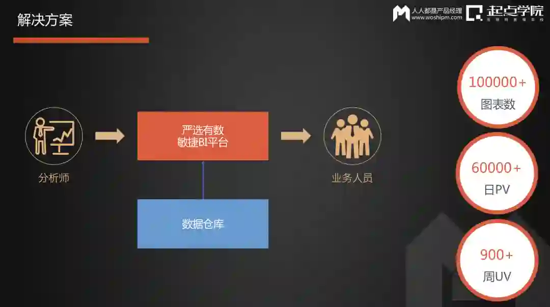 面对“业务有数可看”的需求,我们通过构建数据仓库+严选有数(敏捷BI平台)的方案来解决。数据开发工程师在网易猛犸大数据开发平台使用SQL高效地进行数据开发构建数据仓库,数据分析师基于数据仓库在网易猛犸上使用SQL高效地进行分析集市的开发,再使用网易有数通过拖拽和配置的方式快速进行报表开发。经过数据分析师和数据开发工程师的辛勤工作,严选有数目前有8w的图表(加上其他数据产品一共10w+),工作日PV 6K+,周UV900+,对于一个事业部级别的BI平台,报表量和访问量应该算是非常不错了。那我们是如何做到这样的规模呢?首先应该感谢数据分析师和数据开发工程师的辛勤开发,开发了大量的报表和数据模型。因为本文主题是数据产品,接下来我主要从数据产品(严选有数)的角度展开讲下我们方案的优势。