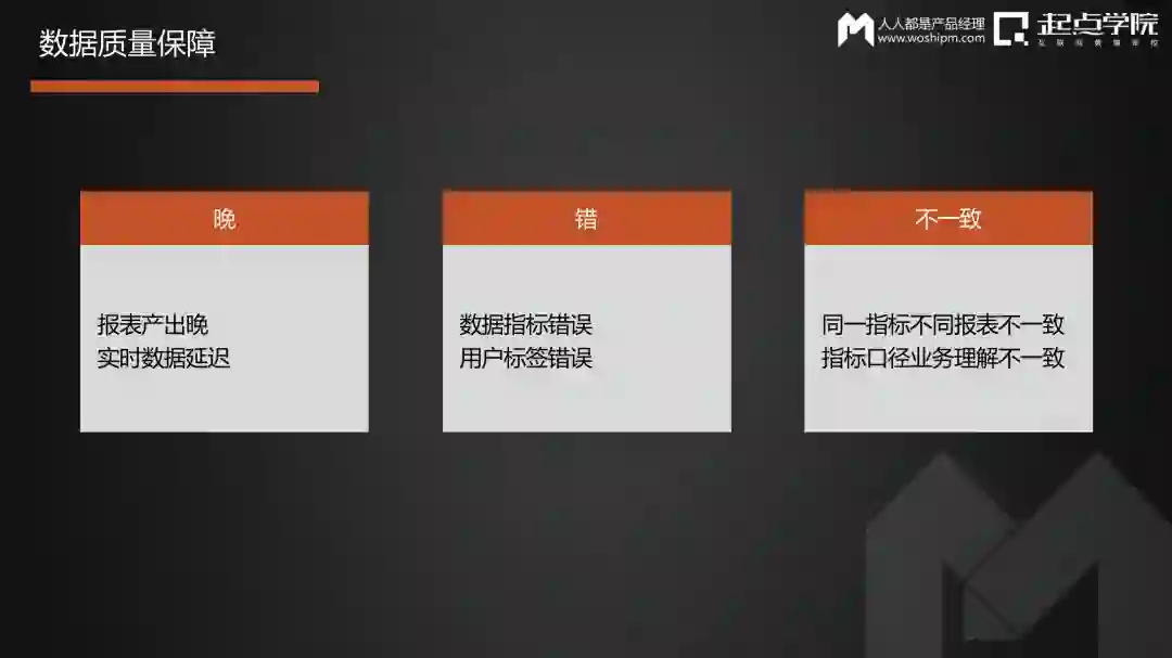 由于数据源多、数据链路长、数据指标口径复杂等原因,数据质量问题多、保障难度大。从用户的角度看数据质量主要存在晚、错、不一致的问题。