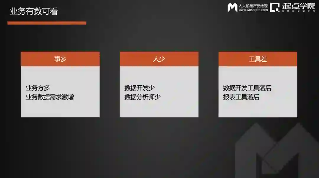 2017年,我刚来严选的时候,是严选数据产品起步的阶段,我们主要面临事多、人少、工具差的三大问题(应该也是各个数据部门长期面临的问题)。