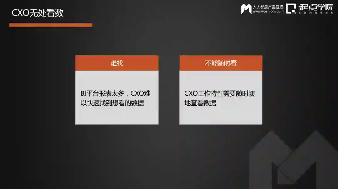 看到“CXO无处看数”,大家可能觉得很奇怪。上文不是说了,在有数上已经制作了大量报表,怎么CXO会无处看数。因为CXO有不一样的场景,进而产生不一样的需求。尽管BI平台(严选有数)上有大量报表,CXO依然面临“难找”、“不能随时看”的问题。CXO有整个BI平台的权限,进入平台后面对海量的报表,难以快速找到想看的数据(CXO的时间又很少)。CXO工作特性需要随时随地查看数据。CXO事情特别多,电商CXO尤甚,品牌电商CXO更甚,CXO不是在开会/出差,就是在开会/出差的路上(连我自己现在也差不多)。